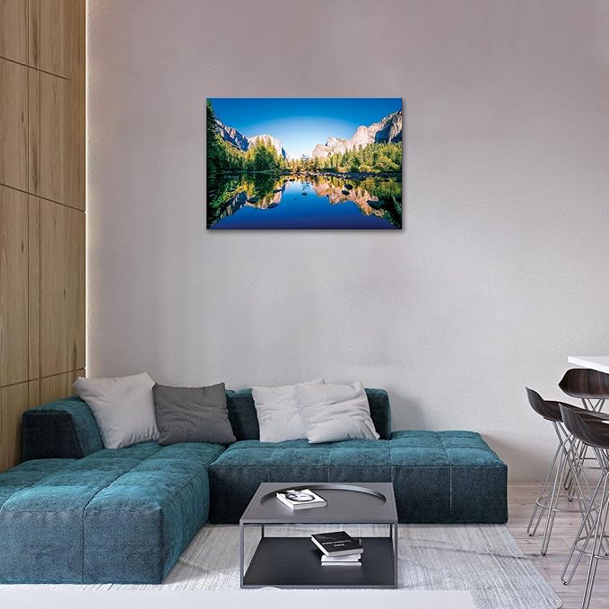 SKASNFAI Yosemite National Park Canvas Wall Art Forest Artwork Blue Lake Picture Prints Framed Home Decor for Bedroom Living Room (24x36 inch)