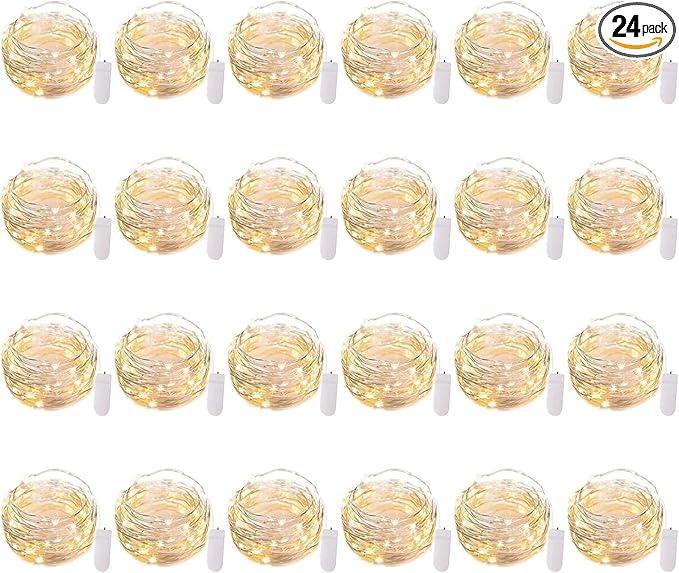 Brightown 24 Pack Fairy Lights Battery Operated - 7Ft 20 Led Mini String Lights Silver Wire Waterproof Firefly Starry DIY Lights for Bedroom Patio Wedding Party Christmas Decor (Warm White)