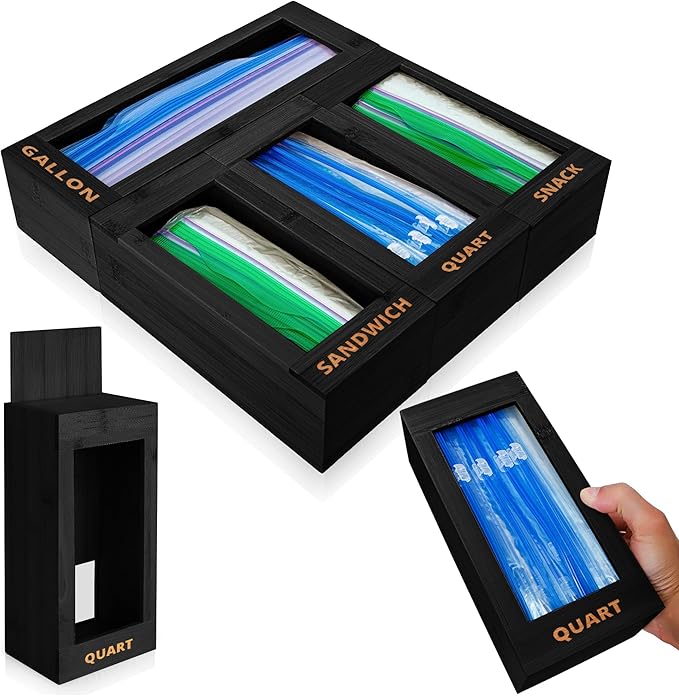- Easy Refills with Removal Back - Refilling your baggie organizer has never been easier! Our bamboo bag storage holders come with a wooden removable back meaning no more struggle stuffing bags into other containers!