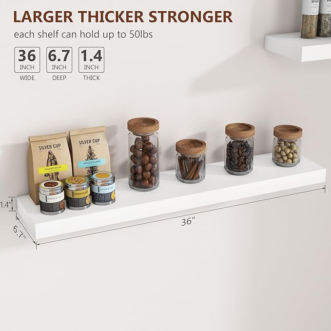 - DESIRABLE HOME DECOR - Brighten up your living space with our 36 inch white floating shelves! Move away from blank, boring walls and create a creative and eye-catching visual centerpiece