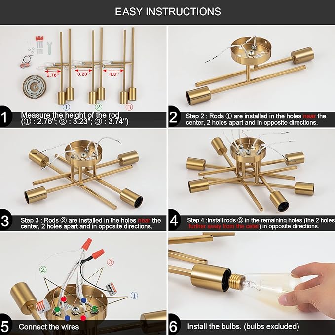 - ๐กใ6-light Sputnik Chandeliers Designใ Semi flush mount ceiling light has elegant and Industrial look, creating a comfortable and modern ambiance to your house.