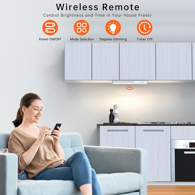 - DIMMABLE AND TIMING -- These dimmable closet lights come with a remote. In "ON" mode, the light will turn on all the time, and it can works with the remote control. There are 2 ways of adjustable brightness: ①10%/50%/100% brightness, ② Step-less Dimming: pressing the +/- button of the remote control. And it has Timing Function with: 10, 30, 60 or 120 mins. ( Note: the remote control do not work for "Auto Mode". )
