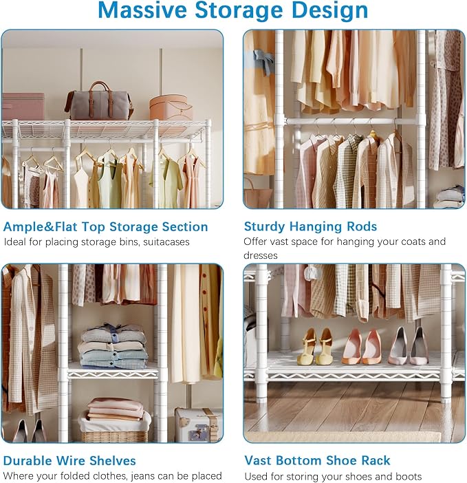 - Extra Large Wardrobe Rack: VIPEK V50 Garment Rack gives you endless possibilities to design your dream closet. It combines generous storage design with smart functionality. Perfect in your bedroom or as a commercial grade garment rack in a clothing store.
