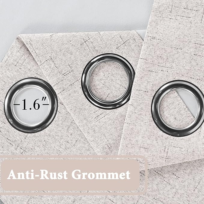 - STANDARD SIZE: Sold per single panel in package, panel measures 52 inches wide by 63 inches long, each faux linen curtain panel has 8 anti-rust grommets, inner rim of grommet is 1 5/8 inch which fit the rod up to 1 1/2 inch, slides smoothly back and forth