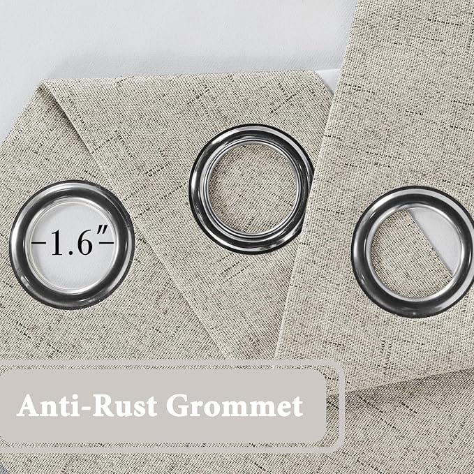 - STANDARD SIZE: Sold per single panel in package, panel measures 52 inches wide by 96 inches long, each faux linen curtain panel has 8 anti-rust grommets, inner rim of grommet is 1 5/8 inch which fit the rod up to 1 1/2 inch, slides smoothly back and forth