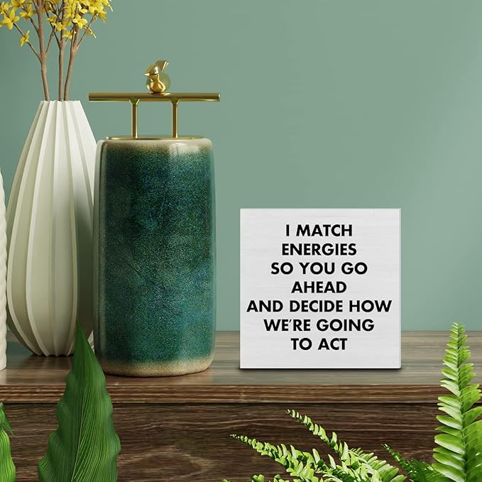 Country Humor Office Funny Work Wood Box Decor Desk Sign I Match Energies So You Go Ahead Wooden Box Block Sign Home Office Shelf Wall Decoration