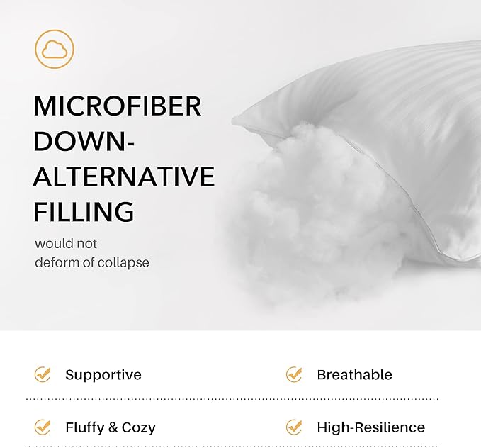 - Soft Cushions: These pillow inserts are filled with an abundant amount of high-quality 100% 3D polyester filling, noiseless, ultra-soft, highly supportive, and elastic. The striped pillowcase can firmly protect the filling and reduce its movement, which reduces the need for adjusting the filling position.