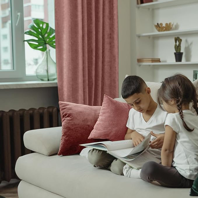- Package Includes: Set of 2 dusty rose soft velvet curtains; each panel measures 52 Inch wide by 108 Inch long, with 5 back tabs and 3” rod pocket fits most standard rods and makes the maximize coverage of windows.