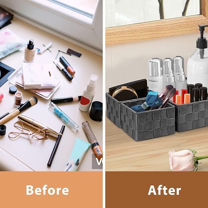 - Excellent Space Storage : Used as a drawer divider or use each cube individually to store various related products. The different compartments fit your needs perfectly. Decorative basket ideal for living room, bedroom, bathrooms, utility room, kids room, craft room, office, closet, kitchen, condos, laundry room, bar cabinet storage, toilet.