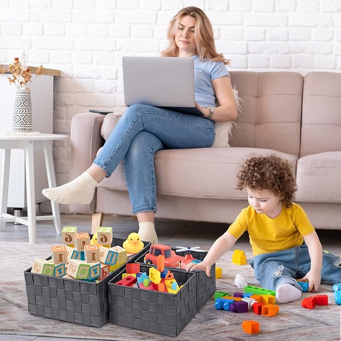 Posprica Woven Storage Baskets for Organizing 6 Pack, Large&Small Storage Cube Bins Set for Bathroom, Storage Boxes Container for Drawer, Closet, Shelf, Dresser, Dark Grey