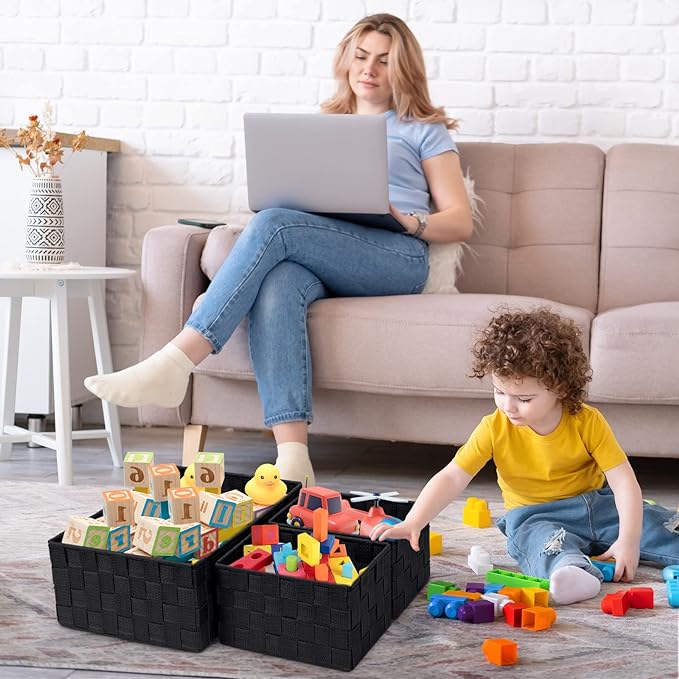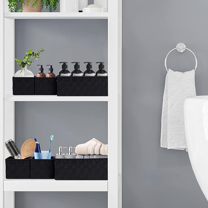 Posprica Woven Storage Baskets for Organizing 6 Pack, Large&Small Storage Cube Bins Set for Bathroom, Storage Boxes Container for Drawer, Closet, Shelf, Dresser, Black