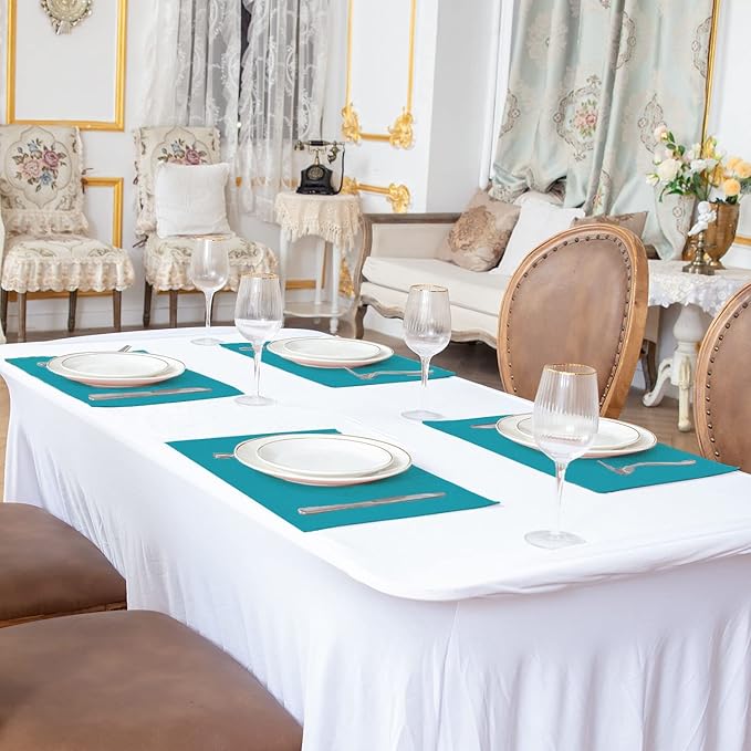 Cloth Placemats Set of 8, Linen Type Fabric Placemats Machine Washable Heat Resistant Placemats Wrinkle Free Thick Polyester Kitchen Place Mats for Dining Table (Teal Blue)