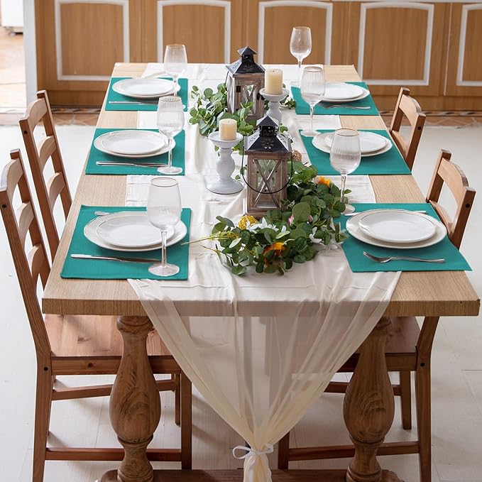 - [RUSTIC LOOKING, PERFECT FOR CHRISTMAS & NEW YEAR & THANKSGIVING DECOR] Made by textured polyester fabric and designed like linen, our table mat has a rustic and cozy look. It effortlessly enhances your table settings and adds a warm, natural touch to your Christmas, New Year and Thanksgiving dinner party, making it perfect for the season.