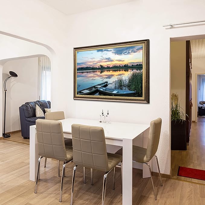 - Framed Sunset Skyline Wall Art: The modern framed lake scenery picture arrives already ready to hang. Metal hook (s) on the stretcher bars and hanging hardware are supplied for easy and quick mounting out of the box