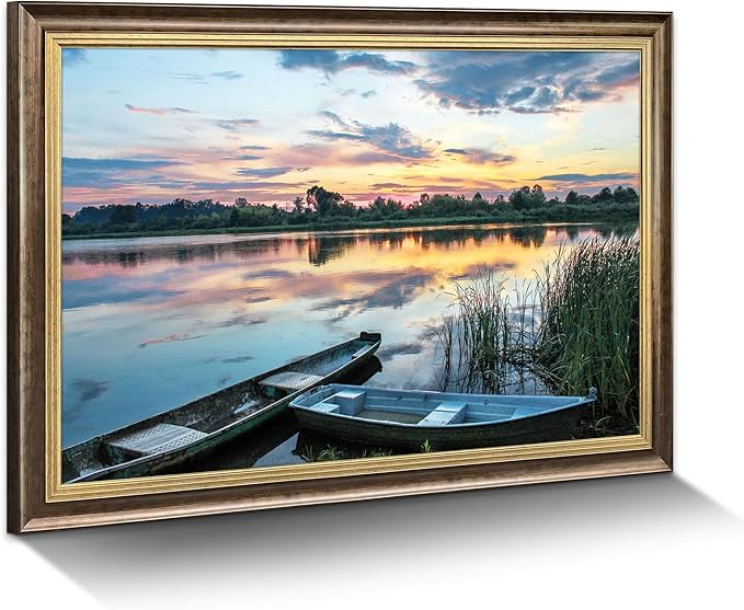 - Sunset Lake Canvas Wall Art: The nature reed boat prints is enhanced with hand-embellished brush strokes by our artists to add fantastic texture and dimension to the finished artwork. The professional embellished technique provides more details of the painting and vividly make the art come alive