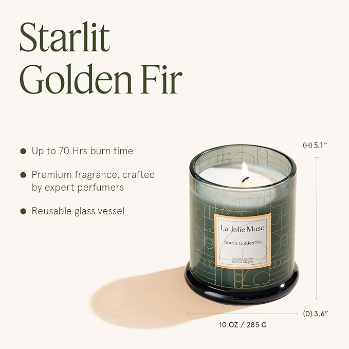- STARLIT GOLDEN FIR - Fresh mountain air blends with cedarwood and earthy patchouli, deepening into a forest of fir balsam with a hint of smoky campfire, evoking memories of holiday gatherings under evergreen trees