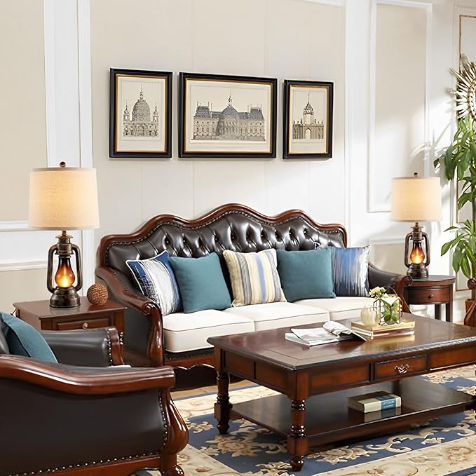 - Dual USB Ports & Free 4 Bulbs: This rustic lamps is equipped with dual 5V 2.1A USB ports on the base, which can charge mobile phones, ipads, kindles, humidifiers and other electronic devices, whether the light is on or off. Two E26 bulbs and two E12 bulbs are included, so you don't have to spend extra time looking for compatible bulbs. This table lamp is a thoughtful, eye-friendly, energy-saving bedside lamp, great for placing next to the sofa as a reading light or bedside lamp