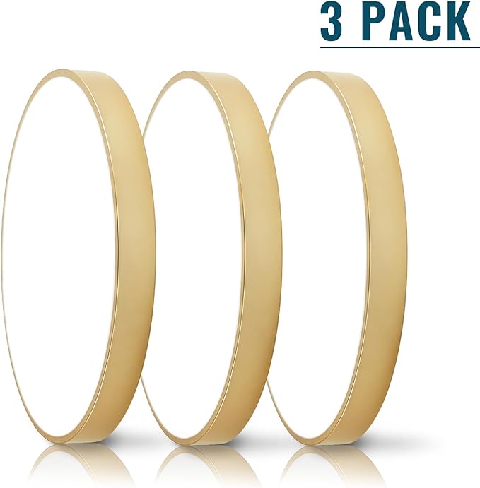 3 Pack Gold Flush Mount Ceiling Light Fixture LED,24W Bedroom Light Fixture Ceiling Mount Dimmable,12 inch Close to Ceiling Light Fixture 5CCT for Kitchen, Bathroom, Living Room