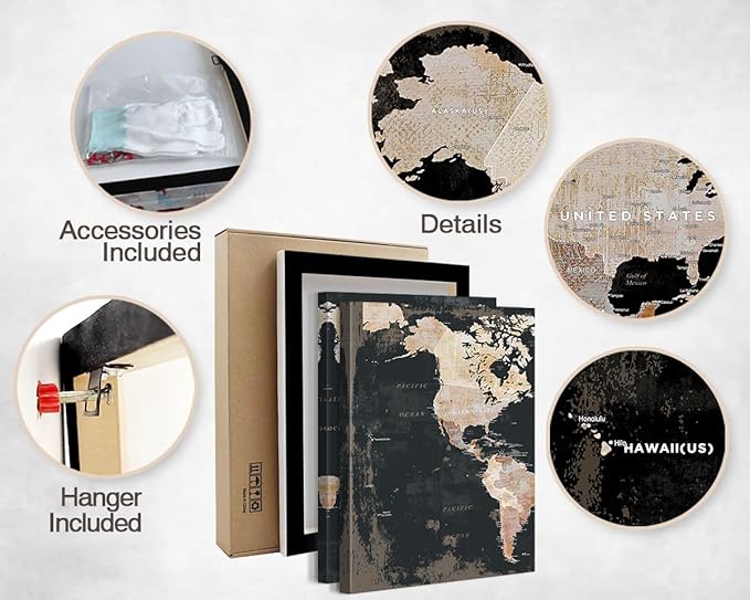 Black and White Wall Art Framed Office Vintage Wall Decor for Bedroom Home Decorations for Living Room Large Modern Maps Pictures Abstract Art Prints
