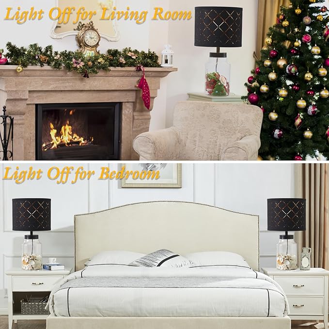 - 【Fillable Lamps with Novelty Design】:The most attractive of fillable nightstand lamps set of 2 is the glass body, which can be filled with seashells, ornaments or dry flower. You can create your unique styles to match different room decor with this design. The options are endless depend on your imagination.Widely used n the living room, bedroom, guest bedroom, office or anywhere.ATTENTION: ORNAMENTS(NOT INCLUDE)