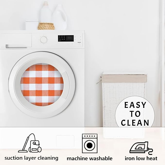 SEEKSEE Cotton Buffalo Plaid Rug 4'x6' Orange and White Checked Rug Washable Doormats Indoor Outdoor Rugs for Layered Front Door Mats, Porch, Kitchen, Farmhouse, Entryway