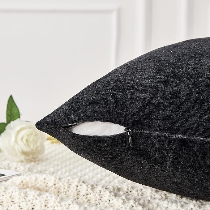 GAWAMAY Decorative Throw Pillow Covers 16x16 Inch Set of 2, Super Soft Chenille Pillows Farmhouse Fall Square Pillowcase for Living Room Bedroom Sofa Couch Cushion Cover Black 40x40cm (No Insert)