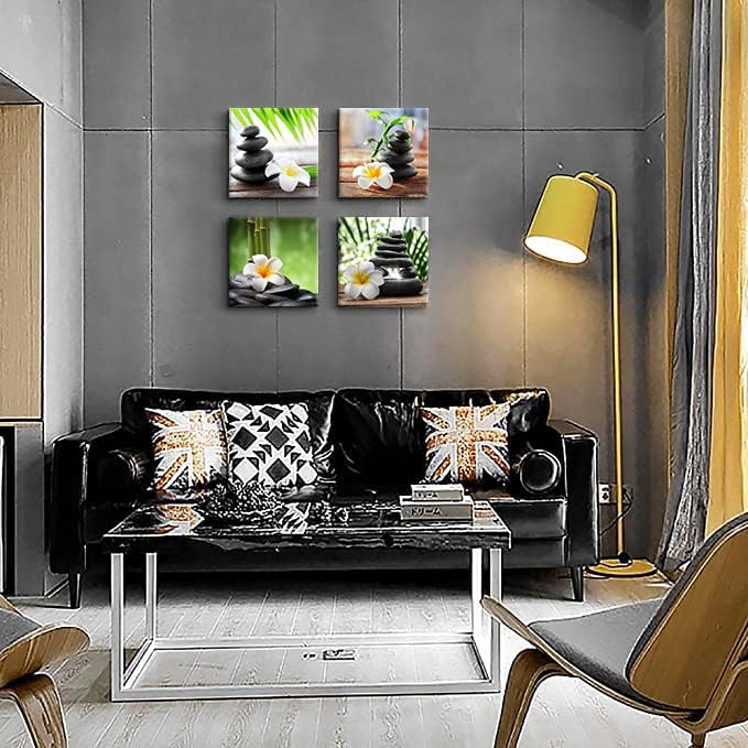 Yxbhhym-Zen Pictures Meditation Canvas Wall Art Spa Stone Green Room Decor White Frangipani Flower Poster Painting Zen Artwork for Bathroom Wall Dรฉcor Living Room Kitchen Decorations Framed Art