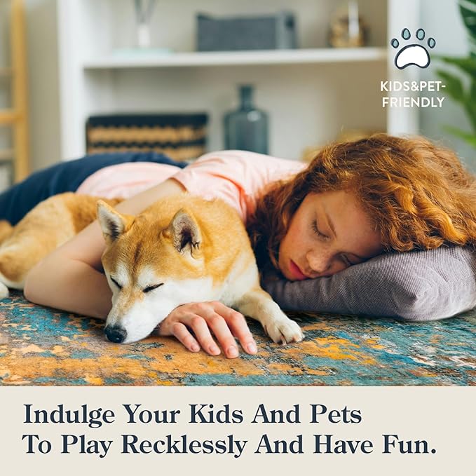 - [Modern Abstract Area Rug] - Add a pop of color for you home with this area rug. Designed with delicate palette, this collection impresses with an abstract print with splashes of blue, orange, yellow, and gray hues. It looks like a sunset, gives people a relaxing feeling, suitable for modern industrial and contemporary homes.