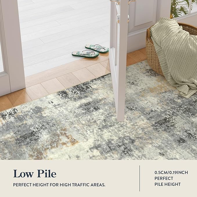 - [Modern Abstract Area Rug] - Add a pop of color to your living room or bedroom with this area rug. Designed with a delicate palette, this collection impresses with an abstract print with splashes of grey, yellow, and beige hues