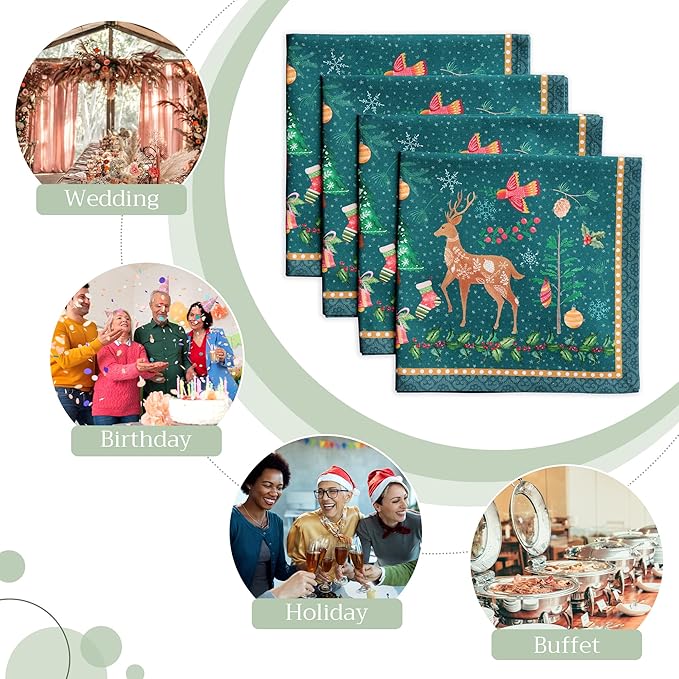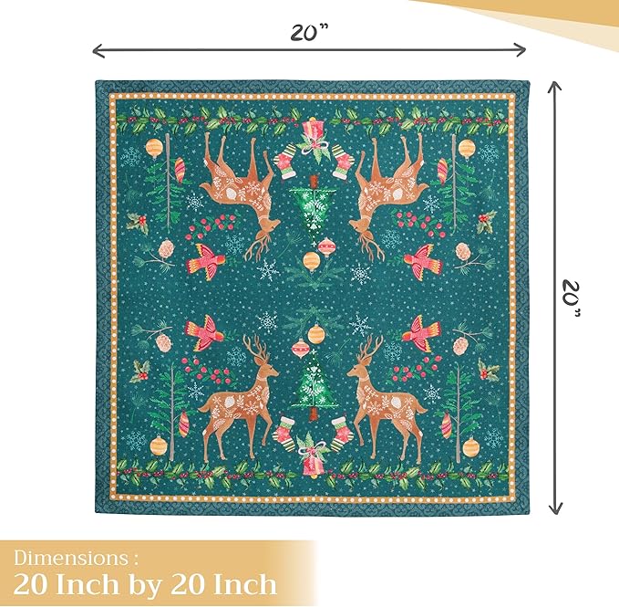 Maison d' Hermine Cloth Napkins Set of 4 100% Cotton Everyday Reusable Square Napkins Cloth Washable, Dinner, Party, Wedding, Restaurant (Hygge Christmas, 20" x 20")