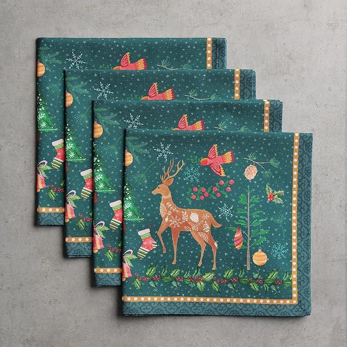 - Package Includes: Set of 4 cloth napkins, each 20"x20" in size. These soft square napkins add a cozy charm to any table setting. Perfect for everyday or special occasions. Crafted from 100% cotton, our products are Designed in Europe and Made in India.