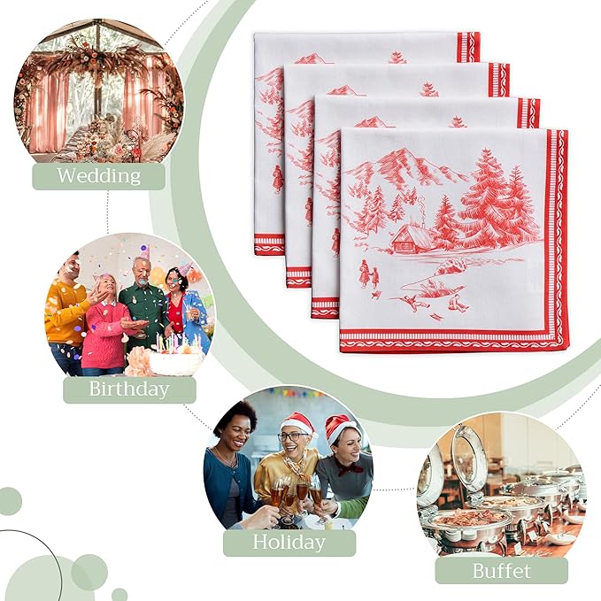 Maison d' Hermine Cloth Napkins Set of 4 100% Cotton Everyday Reusable Square Napkins Cloth Washable, Dinner, Party, Wedding, Restaurant (Winter Jouy, 20" x 20")