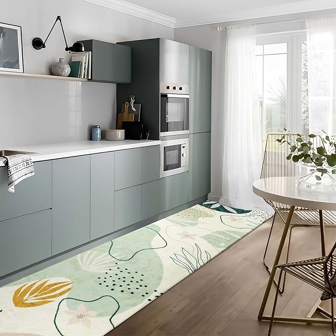 Lahome Green Runner Rugs for Hallway 2x10, Extra Long Washable Non-Slip Kitchen Rug Lightweight Stair Carpet Runner, Boho Botanical Print Soft Entrance Bath Laundry Living Room 2' x 10'