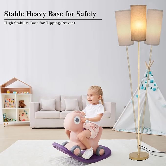 - Universal Fit & Stable Heavy Base: You can use any E26 standard base bulbs (Max 60W for each bulb) such as LED(Max. 15W LED BULB), CFL, incandescent, and halogen bulbs. Linen lampshade(6.3''D x 14.17'' H) allows you to choose multiple-color temperatures to create atmospheres you want. The Tipping-Prevent design of heavy metal base in order to prevent the stand up lamp to topple and fall, this standing lamp can be safely placed on the carpet, Aged, children and pets can play safely.