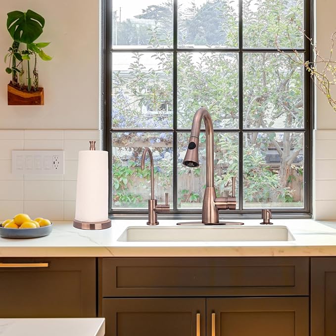 Akicon Paper Towel Holder Stand for Kitchen Countertop & Dining Room Table (Antique Copper, Modern)