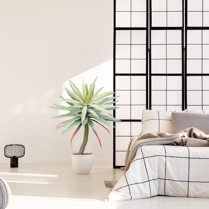 - Lifelike Decorative House Plant --- With realistic texture and color, the fake yucca plant comes with dark green spiky leaves and red leaves which lay on top of one another, creating a natural and realistic look. A stunning green fake agave plant that will elevate your room decor. Note: The white powder on the leaves is to imitate replicating the touch and feel of real plants.