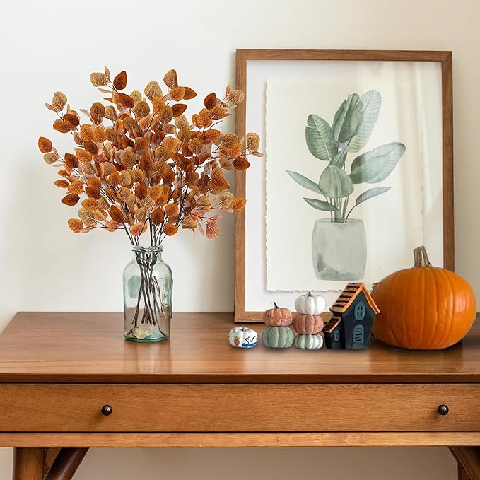 - [REALISTIC APEARRANCE]: These artificial eucalyptus stems have vibrant color and lifelike features. They are made from the real one which have clear patterns and lines with texture, providing your home a strong autumn atmosphere and bring vitality and natural sense to your home.