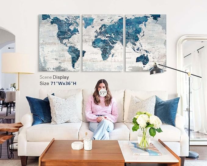 - DECORATIVE MAP - Professionally printed works of art on quality canvas. Each panel is 23.6" by 35.4", set of 3, the overall size is 70.8" x 35.4"