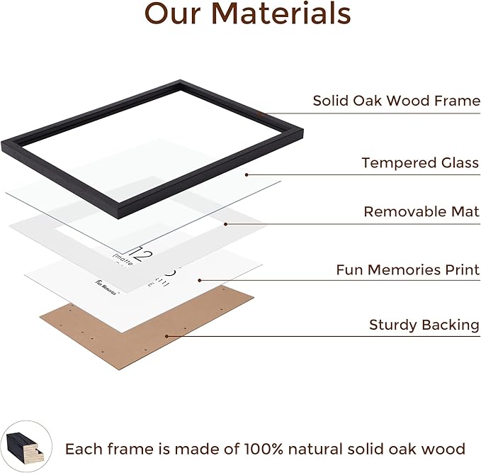 - HIGH-DEFINITION TEMPERED GLASS - This oak wood picture frame comes with sturdy 2.0mm tempered glass front, which is clear and lightweight, giving your photo in a good view condition and protecting them from scratches ,fingerprints, dirt, water. What's more, our glass with edge polished that protect you from scratching by sharp glass edges.