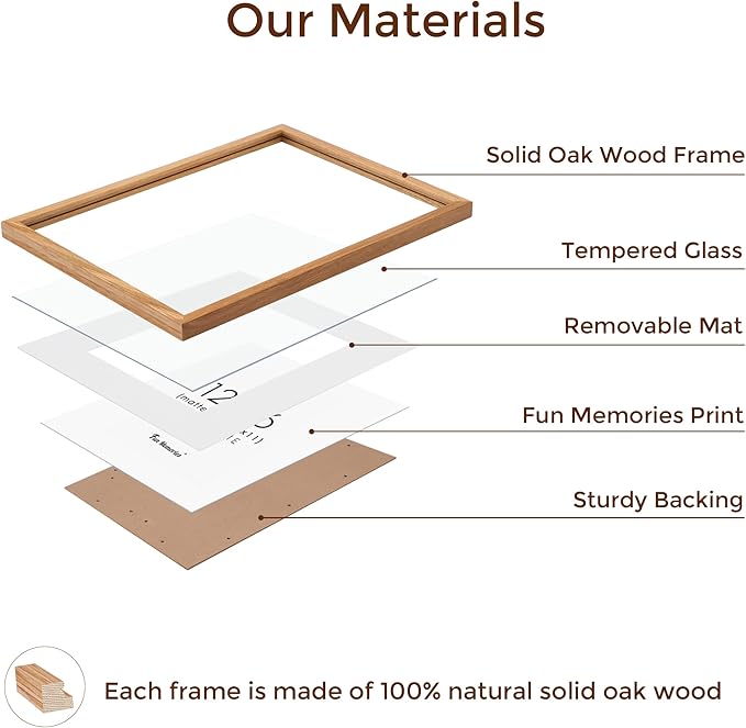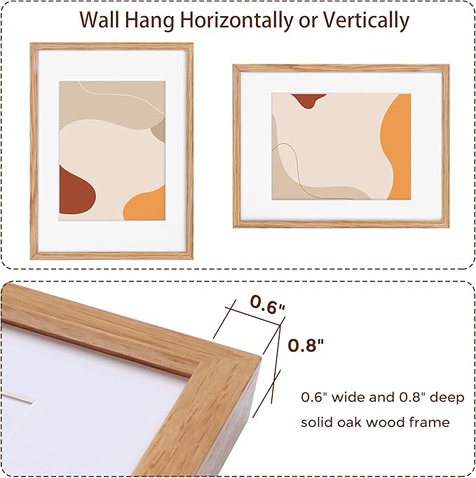 - HIGH-DEFINITION TEMPERED GLASS - This oak wood picture frame comes with sturdy 2.0mm tempered glass front, which is clear and lightweight, giving your photo in a good view condition and protecting them from scratches ,fingerprints, dirt, water. What's more, our glass with edge polished that protect you from scratching by sharp glass edges.