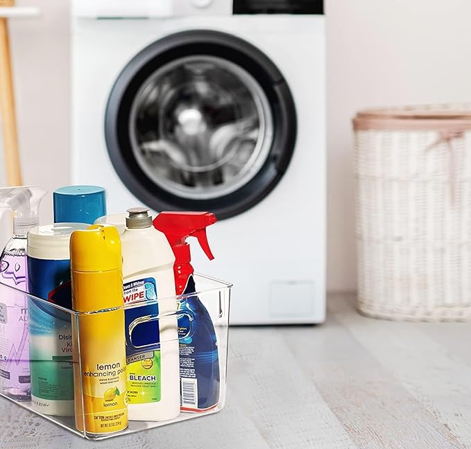 - MADE FROM THICK, BPA-FREE PLASTIC: Our stackable home organization clear bins with lids are made out of heavy-duty plastic that does not contain BPA. Perfect plastic storage cubes bins for kitchen organization, pantry organization and storage, cabinet organizer, fridge organizer, laundry room organization, closet organizers and storage, clothes organizer, bathroom storage, bedroom storage, garage storage, under bed storage organizer, office organization and more.