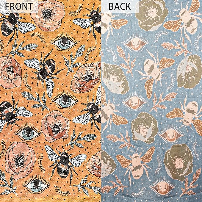 Boho Throw Blanket Reversible Cotton Bohemian Tapestry Hippie Room Decor Double Sided (Boho Bee Yelow 50"x60")