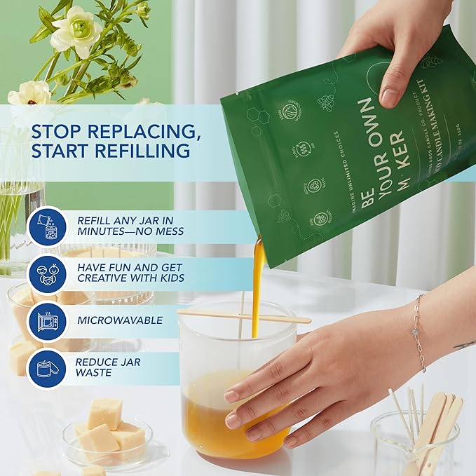 - REUSABLE JARS: Each candle scent comes with a refill option to give our iconic jars a second life. Once the wax has burned down, simply use our Eco Candle Making Kit to refill the jars with any scent you like, helping to reduce waste. Plus, with every purchase, a tree is planted. *Please note that the kit is sold separately. *