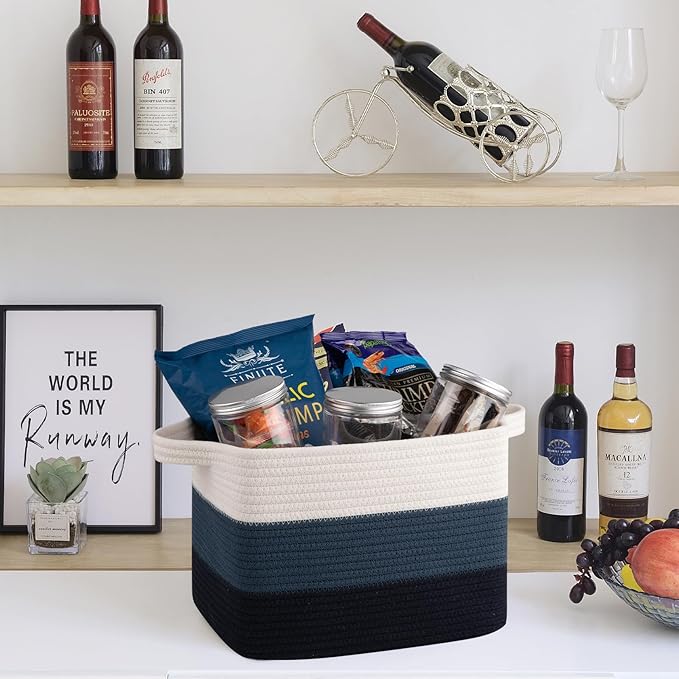 - Unique Design:Small rope basket with foldable design and separate built-In handles for easy portability and store. The handle is made of 3-heeled braided rope, comfortable to the touch, even with heavy items your hand is not restrained.In addition the storage basket available in different unique colors. Provide a nice fine Nordic touch to any room of your house