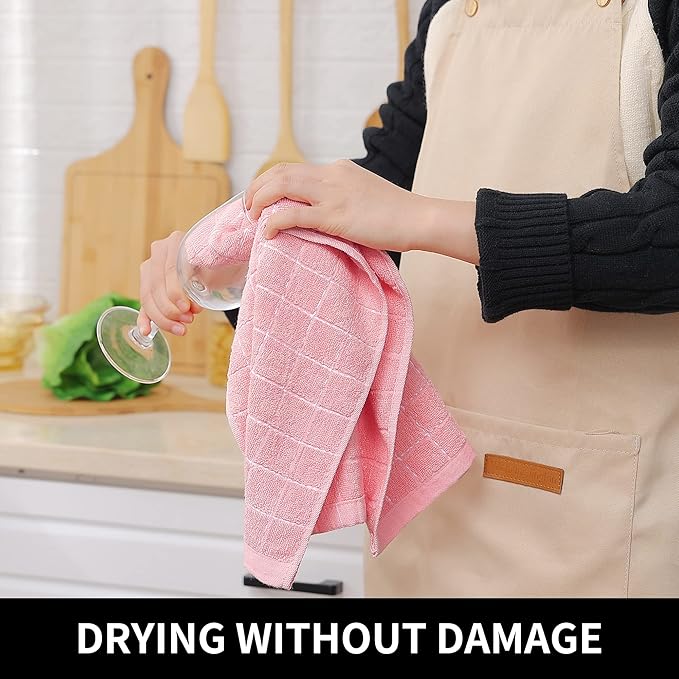 Homaxy 100% Cotton Terry Kitchen Towels(Pink, 13 x 28 inches), Checkered Designed, Soft and Super Absorbent Dish Towels, 8 Pack