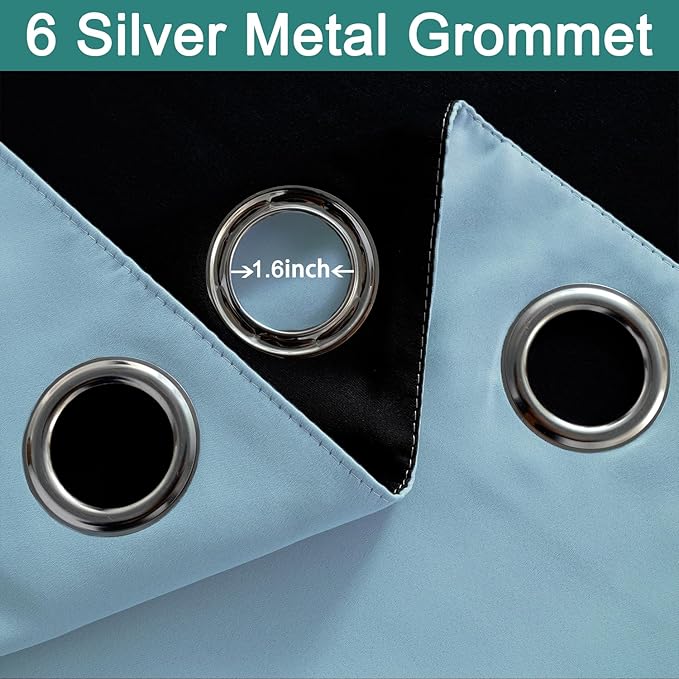 Yakamok 100% Blackout Curtains Energy Saving Thermal Insulated 2 Thick Layers Completely Blackout Drapes with Black Liner for Bedroom (42Wx84L,Sky Blue, 2 Panels)