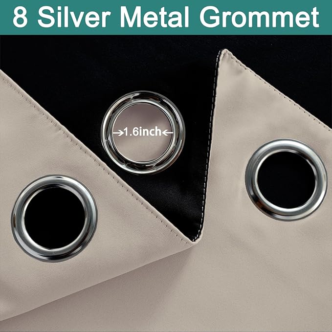 Yakamok 100% Blackout Curtains 96 Inches Long, 2 Thick Layers Heat and Full Light Blocking Soft Thermal Insulated Drapes for Bedroom(52" Wide Each Panel, Natural, 2 Panels)