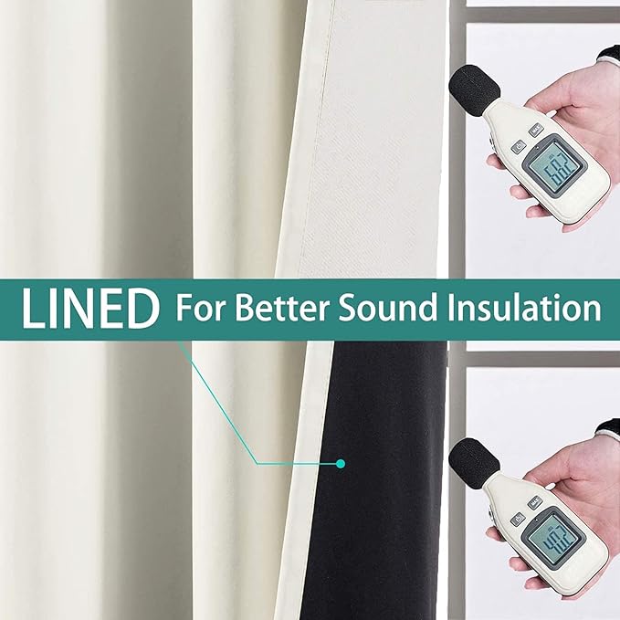 Yakamok 100% Cream Blackout Curtains for Bedroom, Light Blocking Thermal Insulated Noise Reducing Blackout Drapes for Living Room(62Wx63L, 2 Panels)