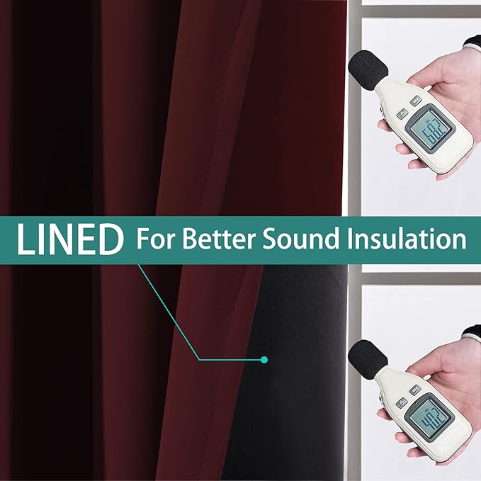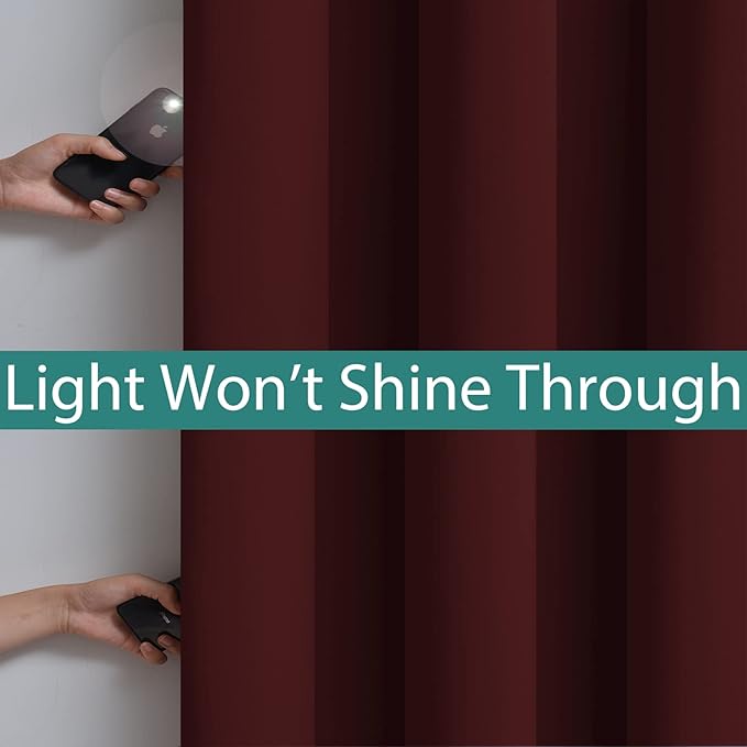 Yakamok 100% Blackout Curtains for Living Room, Noise Reducing Drapes,Thermal Insulated Blackout Curtains for Bedroom(62Wx63L, Burgundy Red, 2 Panels)