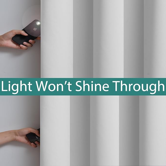 Yakamok 100% Blackout Curtains 63 Inches Long, 2 Thick Layers Heat and Full Light Blocking Soft Thermal Insulated Drapes for Bedroom(52" Wide Each Panel, Greyish White, 2 Panels)